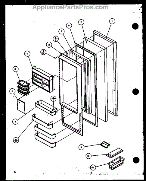 Parts for Amana SC22J-P1116002W: Refrigerator Door (Sc22j / P1116001w) (Sc22j / P1116002w) Parts