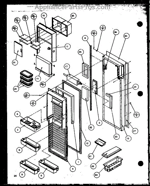 Parts for Amana 36518L-P1121604WL: Refrigerator Door (36791W / P1152601ww) (36798L / P1152602wl) (36795E / P1152603we) Parts