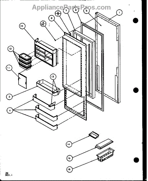 Parts for Amana SLD25JB-P1104009W: Refrigerator Door (Sld25j / P1104008w) (Sld25jb / P1104010w) (Sld25jp / P1104012w) (Sld22jb / P1104024w) Parts