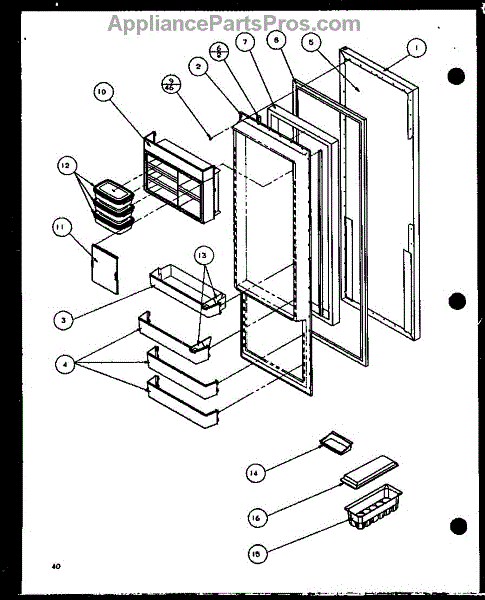 Parts for Amana SLD25JP-P1116505W: Refrigerator Door (Sld25jb / P1116503w) (Sld25jb / P1116504w) Parts