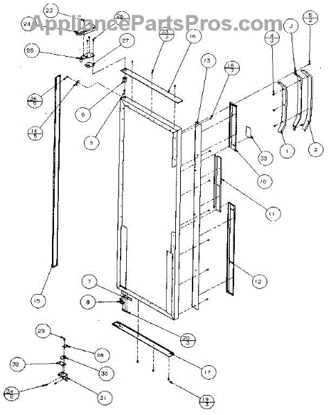 Parts for Amana 36068-P1122002W: Refrigerator Door, Hinge, & Trim Parts
