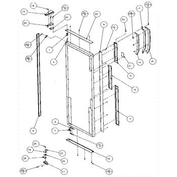 Parts for Amana 36271-P1121801W: Refrigerator Door, Hinge, And Trim Parts