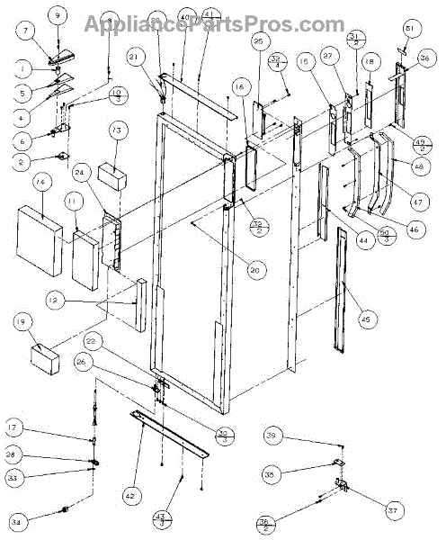 Parts for Amana 36528-P1121602W: Refrigerator Door, Hinge, And Trim Parts