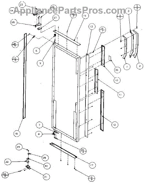 Parts for Amana 36541-P1121701W: Refrigerator Door, Hinge & Trim Parts
