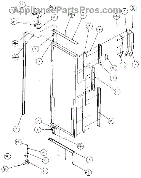 Parts for Amana 36541-P1121702W: Refrigerator Door, Hinge & Trim Parts