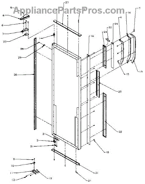 Parts for Amana SSD25NB-P1162409W: Refrigerator Door Hinge And Trim Parts