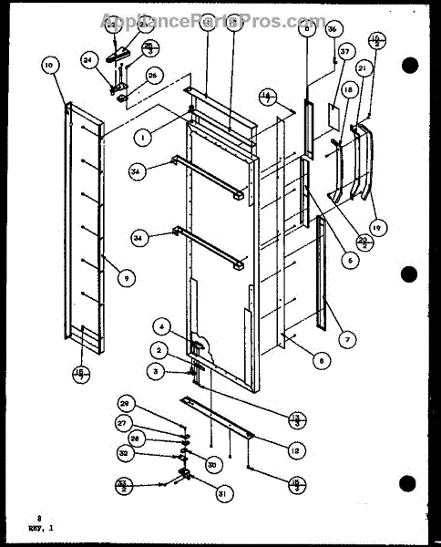 Parts for Amana SWDT22H-P7836025W: Refrigerator Door Hinge And Trim Parts