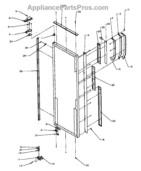 Parts for Amana SXD25N2E-P1162427WE: Refrigerator Door Hinge And Trim Parts