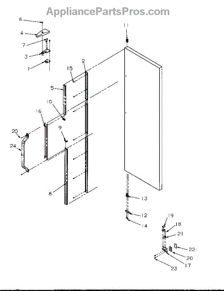 Parts for Amana SXD25S2L-P1190417WL: Refrigerator Door Hinge And Trim Parts