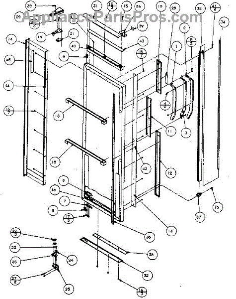Parts for Kenmore 596SBI20H/P7836032W: Refrigerator Door, Hinge, And Trim Parts