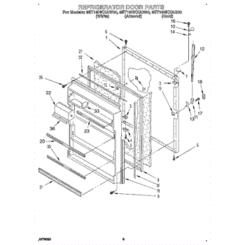 White plastic plug covers unused hinge or handle mounting holes on refrigerator doors. Replace missing, cracked, or discolored plugs for a finished look.