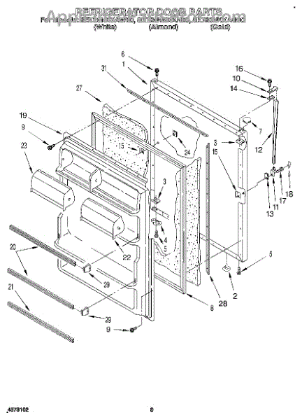 Parts for Whirlpool 8ET20NKXAG00: 07 - Refrigerator Door, Lit / Optional Parts