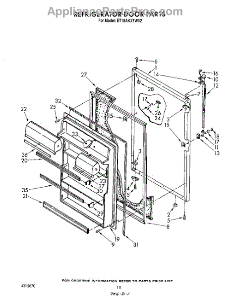 Parts for Whirlpool ET18AKXTM02: 08 - Refrigerator Door , Not Illustrated Parts