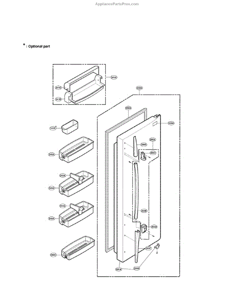 The Door Stopper Assembly is an OEM replacement part for LG French door refrigerators. It is a crucial internal component that ensures the refrigerator door is held securely open at the desired angle.