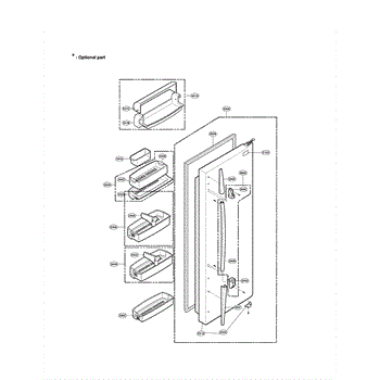The Door Stopper Assembly is an OEM replacement part for LG French door refrigerators. It is a crucial internal component that ensures the refrigerator door is held securely open at the desired angle.