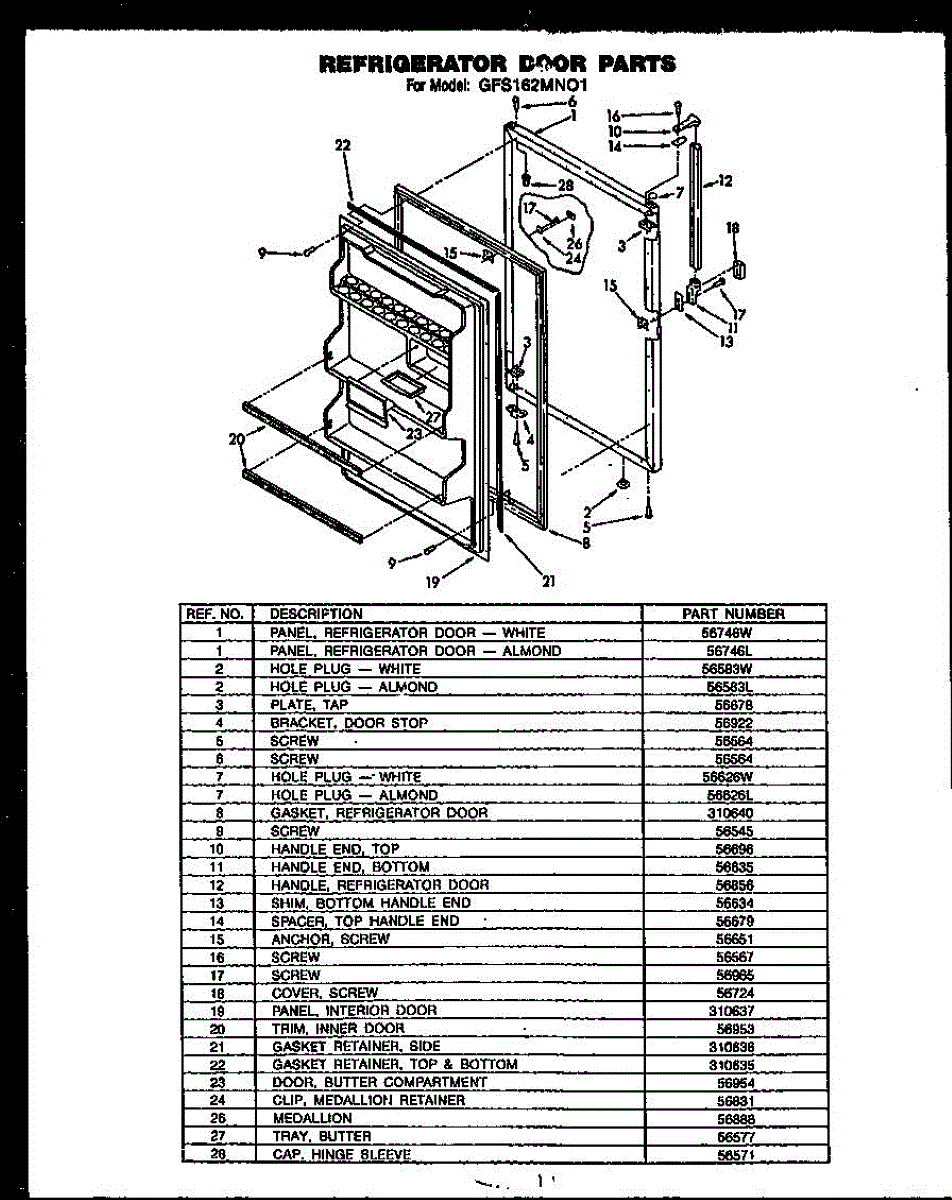 Parts for Caloric GFS162MN01: Refrigerator Door Parts (Gfs162mn01) Parts