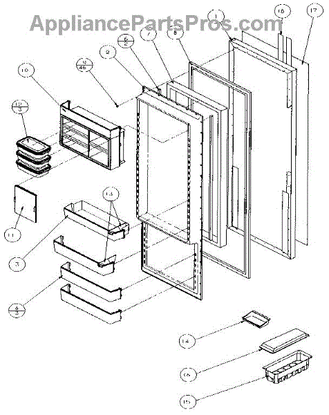 Parts for Amana 35548-P1121710W: Refrigerator Door Parts