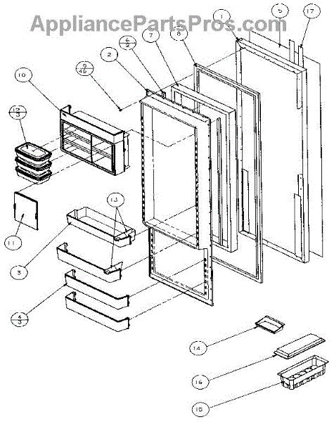 Parts for Amana 36278-P1121803W: Refrigerator Door Parts