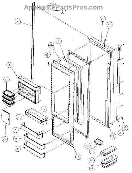Parts for Amana 36511-P1121603W: Refrigerator Door Parts