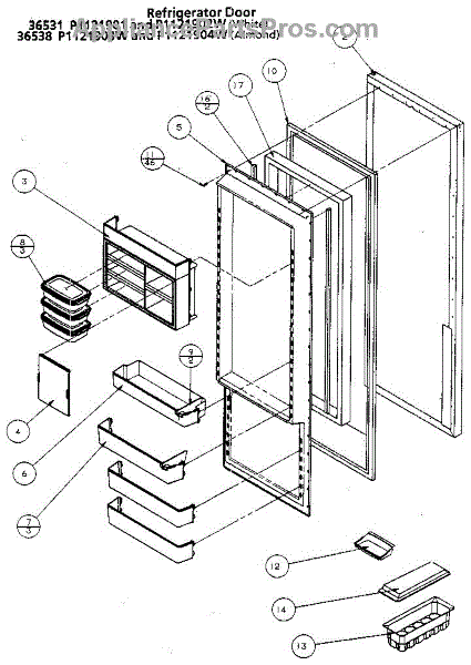 Parts for Amana 36531-P1121902W: Refrigerator Door Parts