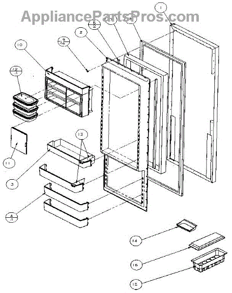 Parts for Amana 36541-P1121702W: Refrigerator Door Parts