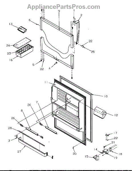 Parts for Amana GTW21B2L-P1192901WL: Refrigerator Door Parts