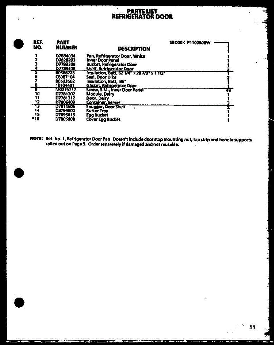 Parts for Amana SBD20K-P1102508W: Refrigerator Door Parts