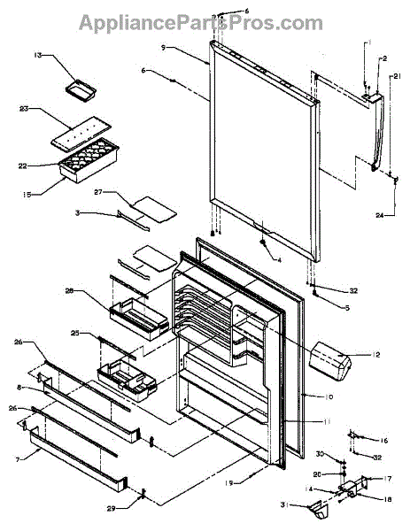 Parts for Amana TK21R3L-P1189001WL: Refrigerator Door Parts