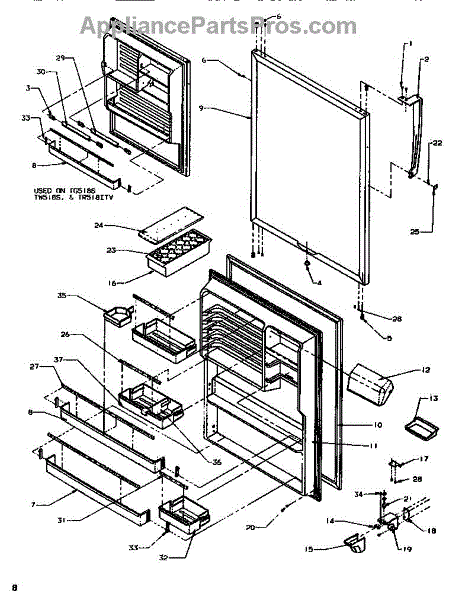 Parts for Amana TR518ITWL-P1183702W: Refrigerator Door Parts