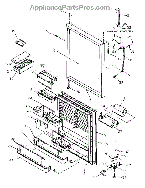 Parts for Amana TX22S3L-P1196002WL: Refrigerator Door Parts