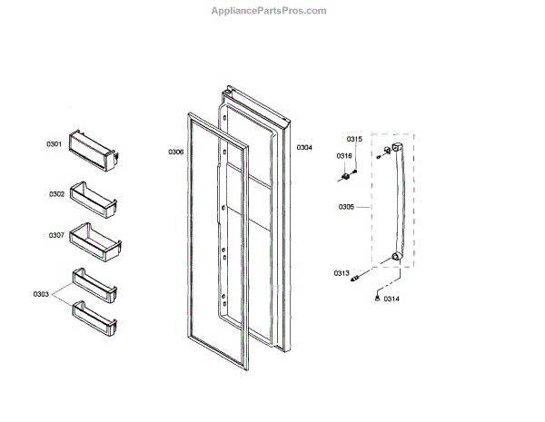 The Rail is an OEM component for Bosch bottom-mount refrigerators. It supports adjustable glass shelves inside the fridge and freezer compartments.