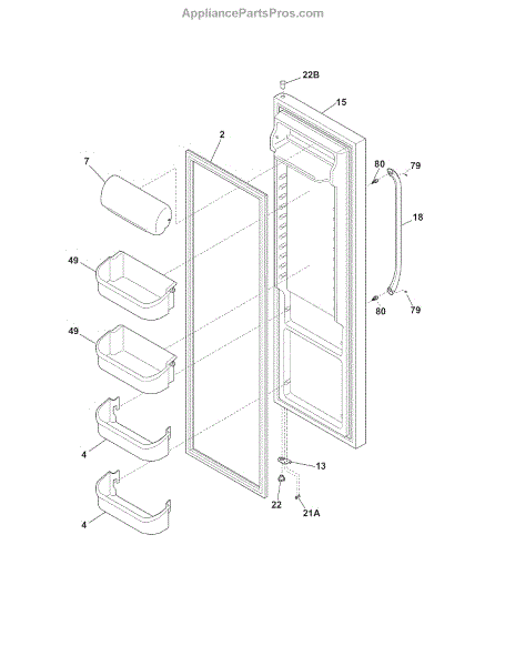 Replacement door handle for refrigerators and freezers. Installs on the front of the door to provide a secure grip. Replace when cracked, loose, or broken.