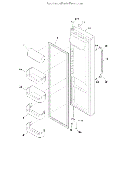 This outer refrigerator door replaces a damaged or dented cabinet door to restore sealing, appearance and operation. It provides the structural outer shell that the gasket, shelves and handle attach to for normal use. What it does: