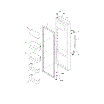 This outer refrigerator door replaces a damaged or dented cabinet door to restore sealing, appearance and operation. It provides the structural outer shell that the gasket, shelves and handle attach to for normal use. What it does:
