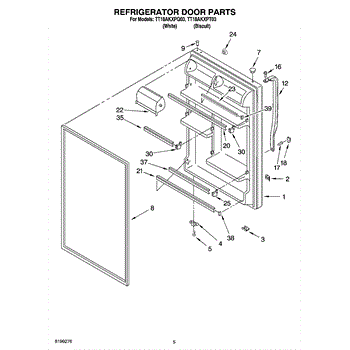 Refrigerator door assembly with gasket-white.