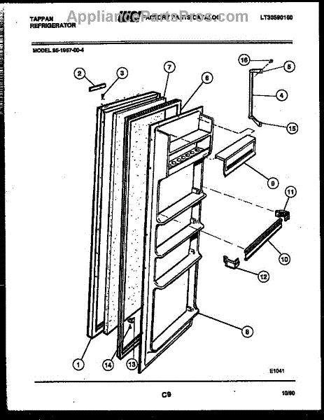 Parts for Frigidaire 95-1967-00-04: 03 - Refrigerator Door Parts
