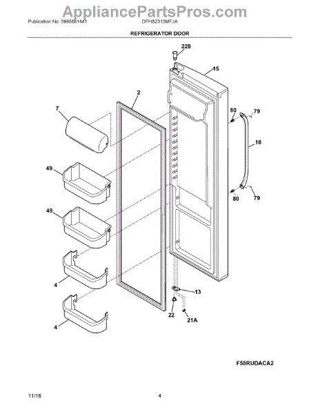 The Door Shelf Bin is an OEM part for Frigidaire refrigerators. It serves as a storage space attached to the inner door panel, providing convenient access to frequently used items such as drinks, condiments, and snacks.