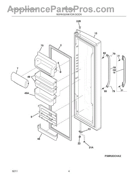 The Door Bin is an OEM replacement part for Frigidaire refrigerators. Mounted on the fresh food compartment door, the white bin provides storage for snacks and beverages. Causes of needing replacement include cracks or fractures over time from repeated loading/unloading of contents. Warping plastic that no longer securely clips into door rails is also remedied. Symptoms of a failing bin consist of: