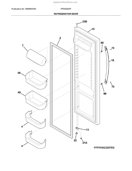 Parts for Frigidaire FFSS2625TE0: Refrigerator Door Parts