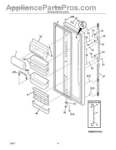 The Handle Mounting Block is an OEM part for Frigidaire refrigerators. This component anchors the refrigerator door handle assembly while also reinforcing the door structure. Causes of a bad mounting block can include cracks developing from repeated opening/closing stresses, broken fasteners loosening its installation, or residual damage during door replacement or repair attempts. Symptoms of a bad handle mounting block include: