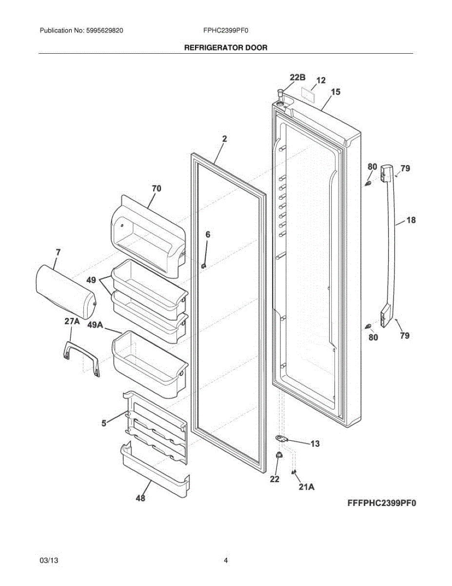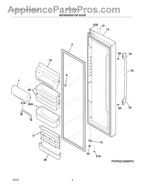 The Door Bin is an OEM part for Frigidaire refrigerators. It is designed to provide additional storage space on the refrigerator door, allowing for easy organization and access to items such as bottles, jars, and condiments.