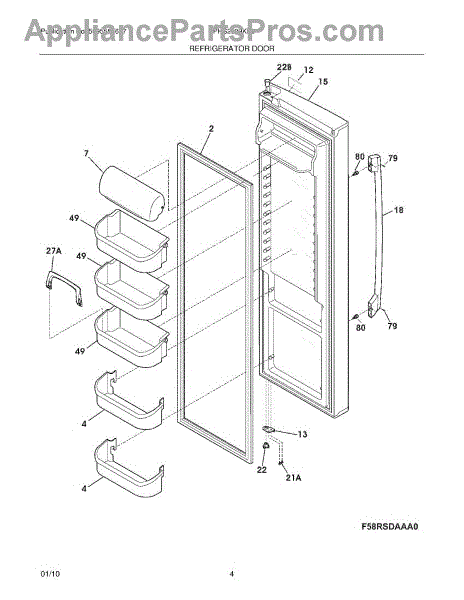 The Door Shelf Bin is an OEM part for Frigidaire refrigerators. It serves as a storage space attached to the inner door panel, providing convenient access to frequently used items such as drinks, condiments, and snacks.
