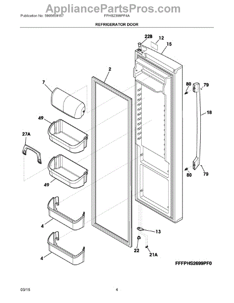 The Door Shelf Bin is an OEM part for Frigidaire refrigerators. It serves as a storage space attached to the inner door panel, providing convenient access to frequently used items such as drinks, condiments, and snacks.