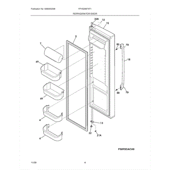 This is a complete door assembly for use with refrigerators. It is located on the front of the appliance and helps keep cold air inside. The door keeps the food and beverages safe inside the refrigerator and offers a way for users to access the appliance contents. Impacts on the door can cause damage. If the door is malfunctioning or damaged, it will need to be replaced.If the door needs to be replaced, make sure the appliance is unplugged. Take off the door hinge covers and unthread the screws. Two people should lift the door off the hinge and place it to the side. For refrigerators with water dispensers, the parts of it should be unhooked and removed. Take the new complete door assembly and place it on the refrigerator. Realign and replace the hinges and reconnect the water dispenser. Turn the power back on before using the refrigerator.The complete door assembly is a genuine OEM replacement part that is directly sourced from the manufacturer. It is sold on an individual basis. This component is designed to be used with several refrigerators by Frigidaire.