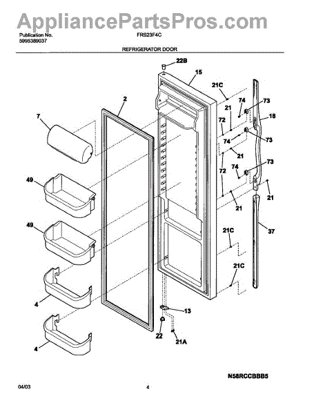 The Door Hinge Bearing is an OEM part for Frigidaire refrigerators. It supports the refrigerator door, allowing it to open and close smoothly. This bearing ensures that the door remains properly aligned and operates without excessive friction, contributing to the overall longevity and functionality of the refrigerator.