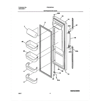 This is a complete refrigerator door assembly in black that replaces a worn, damaged, or dented door and restores the appliance's appearance and sealing surface. Fits the refrigerator's fresh-food compartment and ships ready to install. What it does