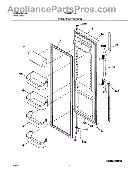 Secures door handle trim to the refrigerator door. Replace if broken, cracked, or missing after impact. Clips into door trim and attaches to door.