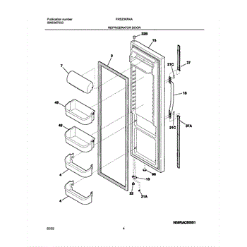 This is a complete refrigerator door assembly in black that replaces a worn, damaged, or dented door and restores the appliance's appearance and sealing surface. Fits the refrigerator's fresh-food compartment and ships ready to install. What it does