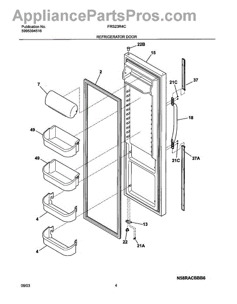 The Door Hinge Bearing is an OEM part for Frigidaire refrigerators. It supports the refrigerator door, allowing it to open and close smoothly. This bearing ensures that the door remains properly aligned and operates without excessive friction, contributing to the overall longevity and functionality of the refrigerator.