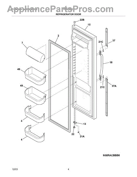 Secures door handle trim to the refrigerator door. Replace if broken, cracked, or missing after impact. Clips into door trim and attaches to door.